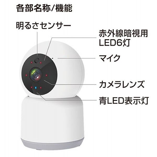 ●スマートライフアプリを使って室内をリアルタイムで確認できる見守りカメラとして最適。●左右355度、上下108度首振り可能、スマホでも遠隔操作できる。追跡機能付で自動で動くものを追跡●スマホで室内をリアルタイム確認できる。フルHD対応の高画質な映像で家族の見守りに。赤外線暗視モードで暗闇もはっきり撮影●常時録画対応70日間(128GBのSDカード)以上の記録、過去の記録も確認できる。●動体センサー機能搭載。動くものが映ると撮影し、スマホへ通知記録写真を20日間サーバーに保存 ※要設定●双方向通話対応マイク/スピーカー付きで外出先から声がかけられる。●最大4台同時にカメラ画面を閲覧可能なマルチ画面対応※KJー181またはKJー182が4台ある場合。メインアカウントのみ最大4人で1台のカメラ画面を同時に閲覧可能