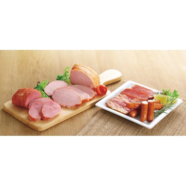 商品内容:●特選(ロースハム320g、あらびき燻しウインナー80g×2)、肩ロース焼豚185g