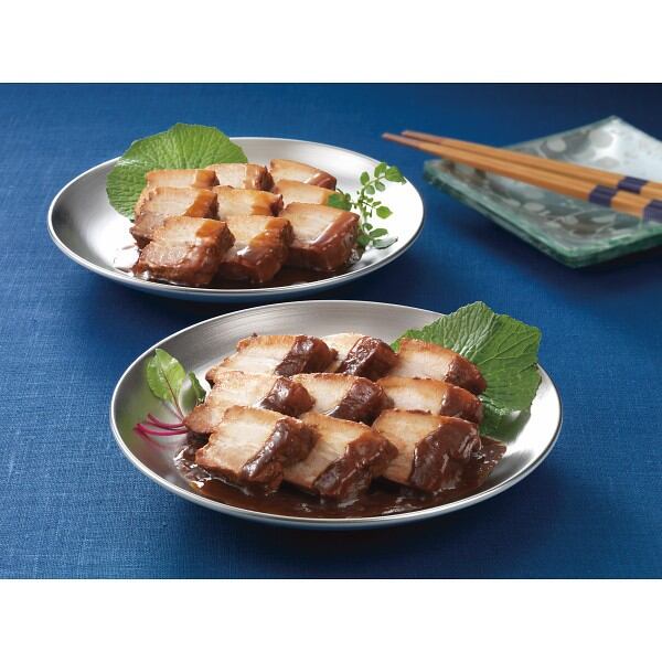 豚ばら肉のかたまりをじっくり煮込んで仕上げました。味噌・醤油の2種類の味をお楽しみください。