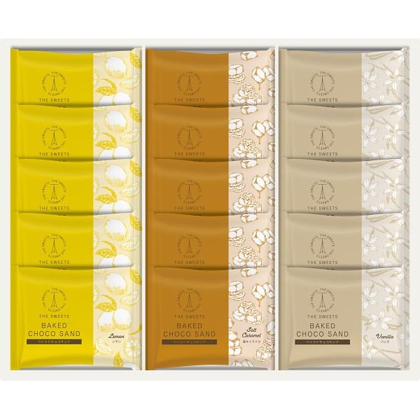 商品内容:●ベイクドチョコサンド(バニラ・レモン・塩キャラメル)×各5