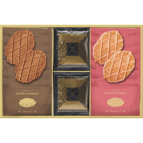 商品内容:●ワッフルクッキー(チョコ・いちご×各8)、ドリップコーヒー8g×8※商品の特性上、衝撃によって菓子が割れることがございます。