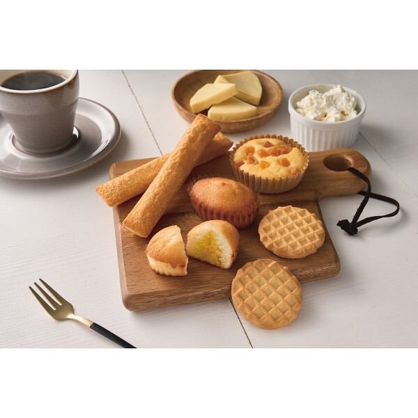 商品内容:●アプリコットチーズフィナンシェ・ワッフルクッキー×各3、アプリコットチーズケーキ・チーズスティックケーキ×各2