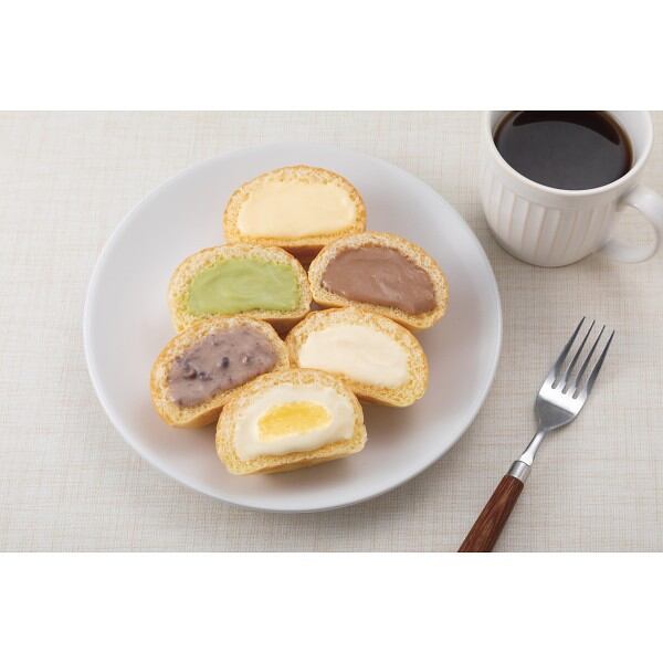 商品内容:●くりーむパン(カスタード×2、生クリーム&カスタード×1、抹茶×1、小倉×1、チョコ×1)、とろける瀬戸内くりーむパンレモン×6