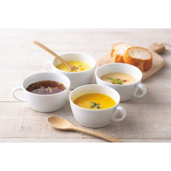 商品内容:●スープ4種(北海道産チーズコーン・北海道産かぼちゃ各16.5g、北海道産サーモンクリーム17.2g、北海道産オニオン7g)×各1、カップ付き(紙製)