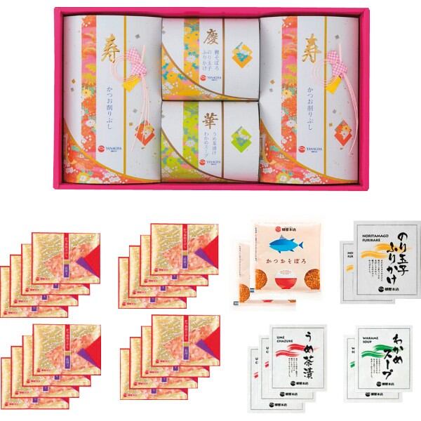 商品内容:●花削り3g×8袋×2、鰹そぼろ5g×2、のり玉子ふりかけ4.5g×2、うめ茶漬4.3g×3、わかめスープ5.3g×2※中身包材デザインが変わる場合がございます。