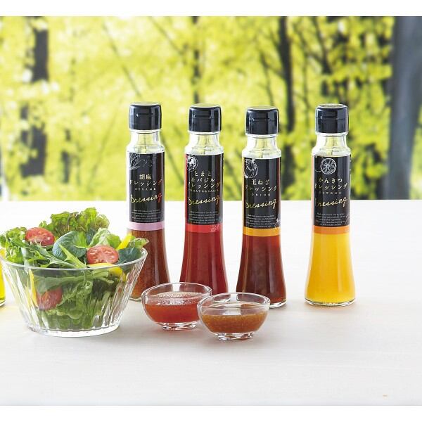 野菜がたっぷり食べられる、見た目鮮やか味いろいろ、美味しいドレッシングの詰合せです。