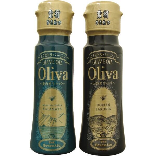 ギリシャ産限定エクストラバージンオリーブオイル。香り華やかな海のオリーバ、コクと甘みのある山のオリーバの小瓶2本セット