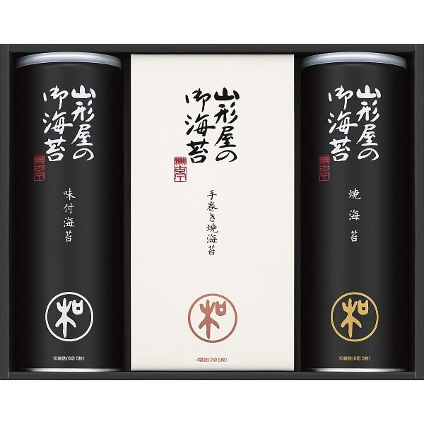 商品内容:●焼海苔・味付海苔各10袋詰(8切5枚)×各1、手巻き焼海苔4袋詰(2切5枚)×1