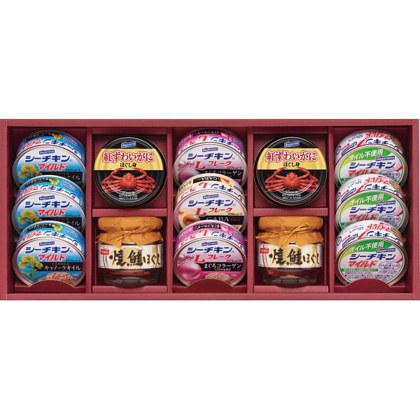 人気のシーフードをバラエティ豊かに詰合せました。シーチキンLフレーク(コラーゲン入り・GABA入り)はギフト専用シーチキンです。