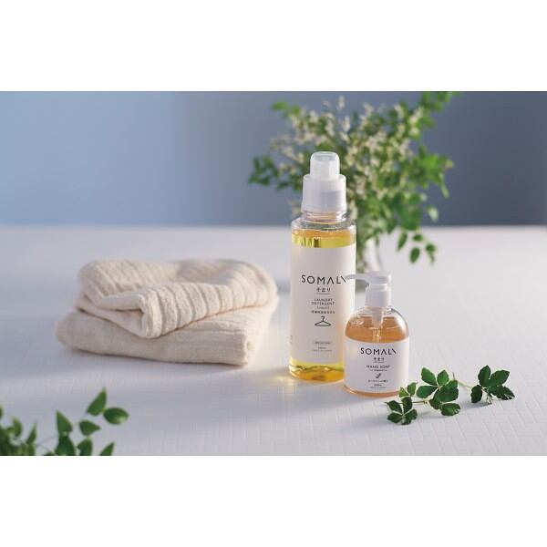 SOMALI=そざいのかたまり。必要最低限の素材のみを使用し“本当にいい”と言えるものを作るためにシンプルを突き詰めた商品です。泡立ちと泡切れの両立を図った純石けん分と植物由来の界面活性剤の最適なバランスで調整した洗浄力と洗い上がりにこだわった洗濯用液体石けん。衣類への洗剤残りが少ないので赤ちゃんの肌着や敏感肌の方にも安心です。天然精油オレンジオイルの爽やかな香り。