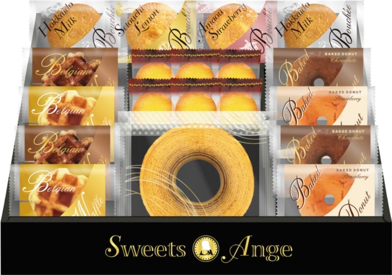 商品内容:ベルギーワッフル(プレーン)×2、ベルギーワッフル(ショコラ)×2、ミルクバウムクーヘン×1、ベイクドドーナツ(ストロベリー)×2、ベイクドドーナツ(ショコラ)×2、プレーンクッキー×6、ブッセ(北海道ミルク)×2、ブッセ(瀬戸内レモン、あまおう苺)×各1