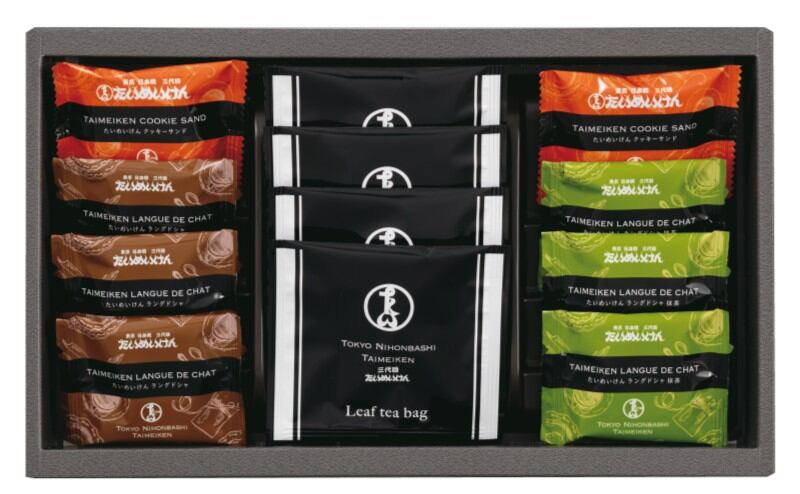 商品内容:ラングドシャ×3個、ラングドシャ(抹茶)×3個、クッキーサンド×2個、紅茶ティーバッグ2g×4袋