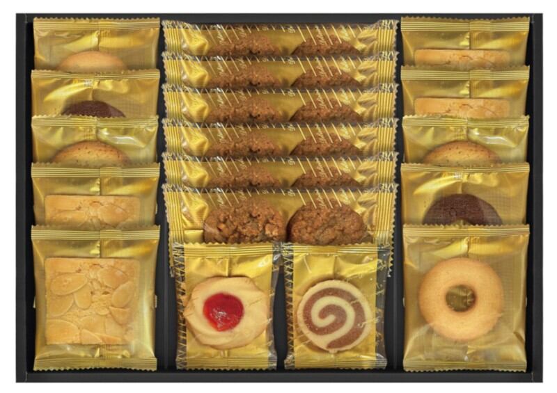 商品内容:クッキー(プチコーヒー2枚入×12、プチラズリン×2、うずまき×2、リングバター×4、リングココア×4、トフィーアーモンド×8、アールグレイ×4)