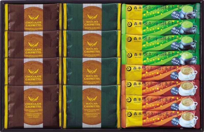 商品内容:ゴーフレット(チョコクリーム)×4、ゴーフレット(抹茶クリーム)×4、宇治抹茶オーレ10g×4、焙じ茶オーレ10g×4
