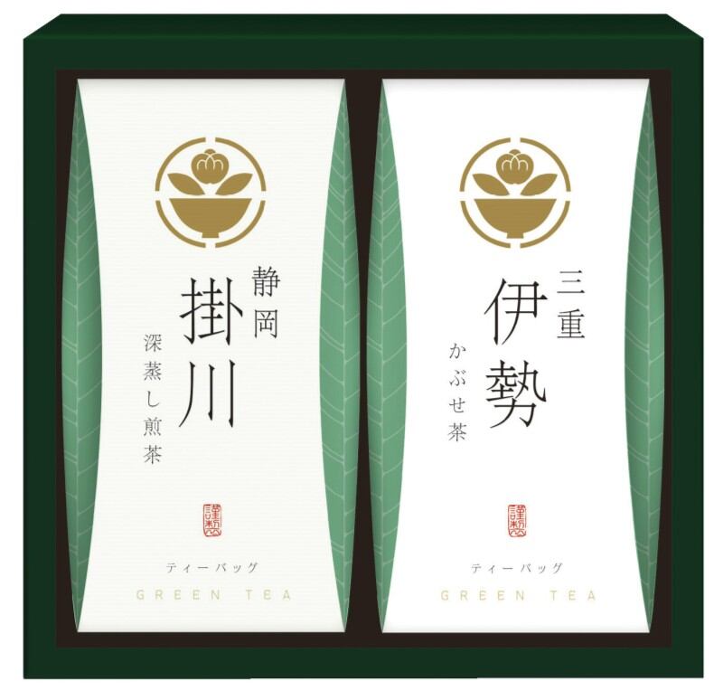 商品内容:静岡 掛川深蒸し煎茶ティーバッグ(3g×5p)×1、三重 伊勢かぶせ茶ティーバッグ(3g×5p)×1