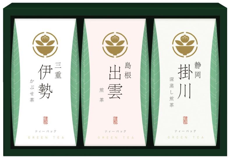 商品内容:静岡 掛川深蒸し煎茶ティーバッグ(3g×5p)×1、三重 伊勢かぶせ茶ティーバッグ(3g×5p)×1、島根 出雲煎茶ティーバッグ(3g×5p)×1