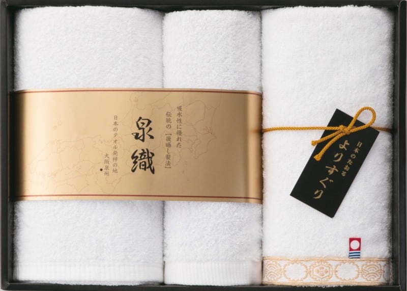商品内容:泉州フェイスタオル:34×80cm×1、今治フェイスタオル:34×80cm×1、泉州ハンドタオル:34×35cm×1