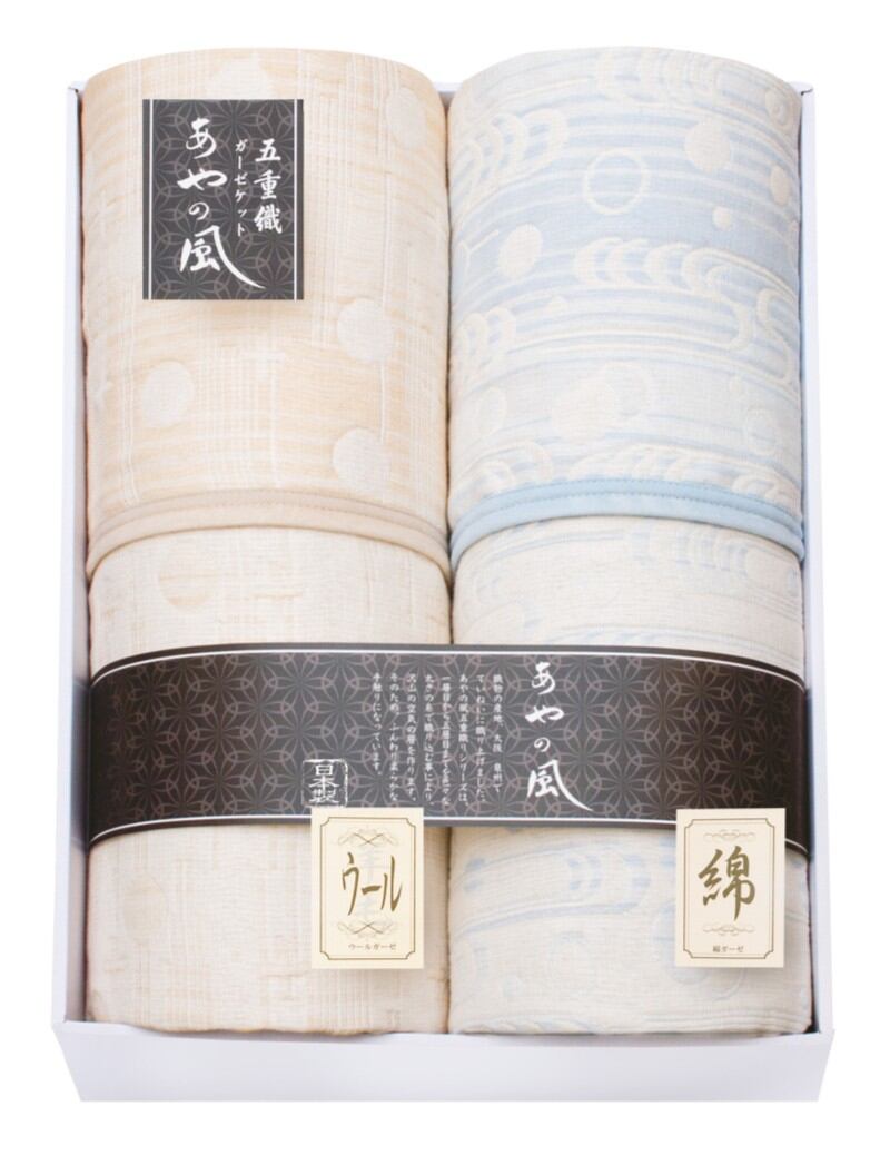 泉州あやの風ウール混五重織ガーゼケット2P SAW-30002 内祝 お返し引出物に 【送料無料】(沖縄・北海道・離島除く)