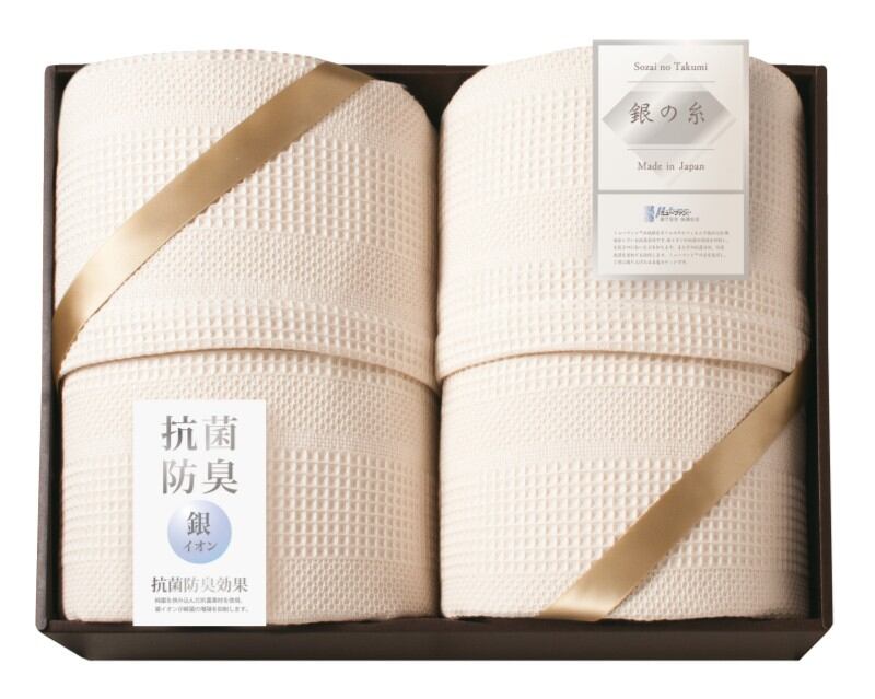 ミューファン 銀の糸?ワッフルケット2P(抗菌防臭加工) MFK-81200 内祝 お返し引出物に 【送料無料】(沖縄・北海道・離島除く)