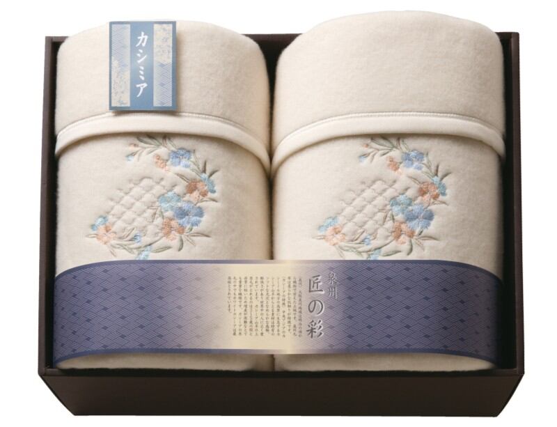 泉州匠の彩?カシミア入ウール綿毛布(毛羽部分)2P SHW-24051C 内祝 お返し引出物に 【送料無料】(沖縄・北海道・離島除く)