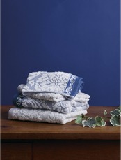 優雅なライフスタイルを演出するタオル ヨーロッパの古い街並みに佇む、歴史ある邸宅の優美な内装や調度品からインスピレーションを受けた、落ち着いたブルーを基調にしたエレガントなデザインは贈り物に最適です。