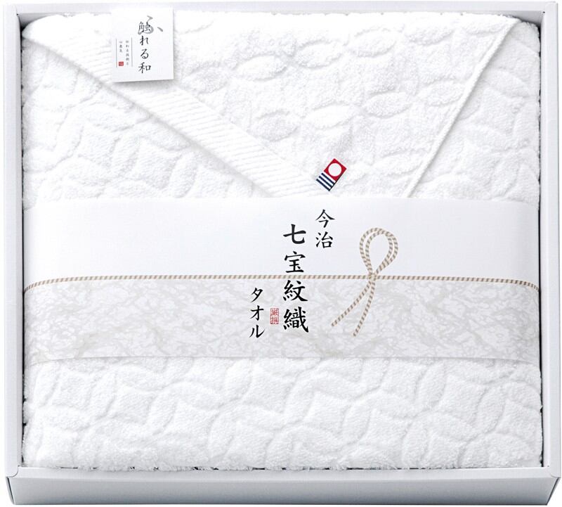 伝統文様をあしらったふんわりとした肌ざわりのタオル 日本古来より伝わる縁起柄 【七宝】をモチーフに今治自慢の紋織技術で織り上げました。