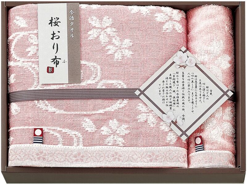 桜おり布 タオルセット ピンク IS9630 【送料無料】(沖縄・離島は別途)