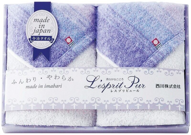 L'esprit Pur(レスプリピュール)とはフランス語で「きよらかなこころ」を意味します。純真な想いからくる、清らかなこころのイメージを清楚なパープルグラデーションを使ってふんわりとやわらかなタオルギフトにしました。