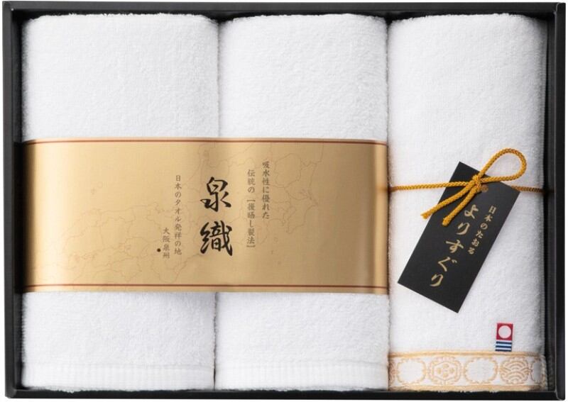 商品内容:フェイスタオル:34×80㎝(泉州)×2、フェイスタオル:34×80㎝(今治)×1