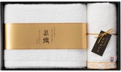 やわらかく吸水のよい甘撚り糸を使用した泉州タオルと心地良い純白の今治タオルをセットしたギフトです。