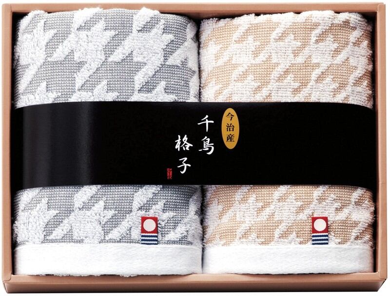 英国生まれの世界中で好まれるお洒落な千鳥格子をモチーフに、代表色のチャコールグレー・キャメルで今治タオルに仕立ててみました。