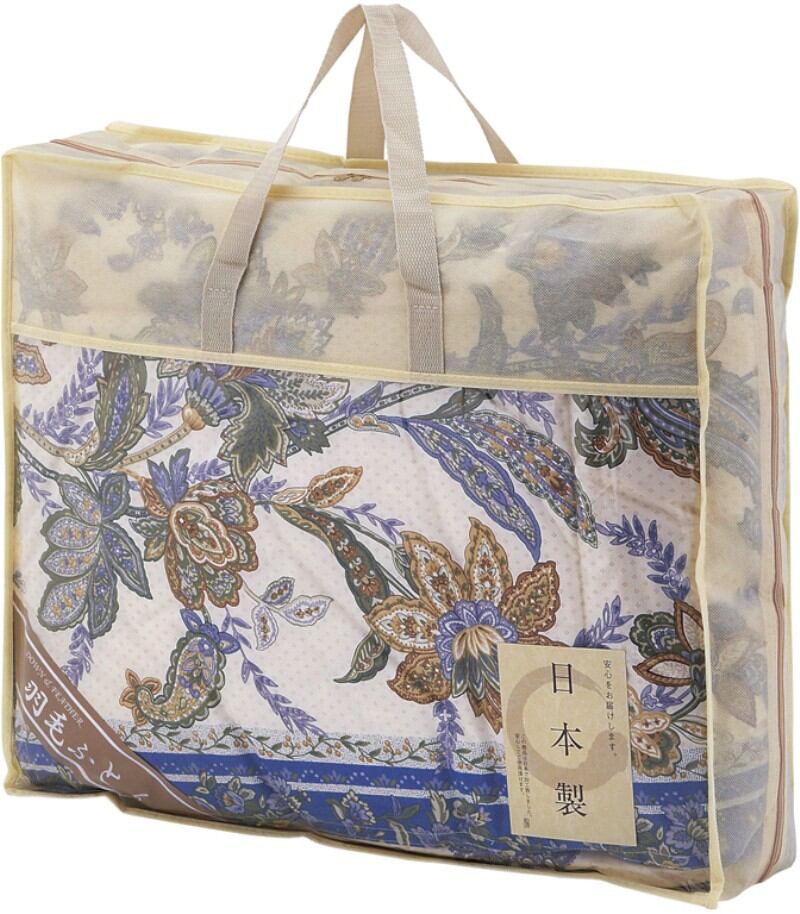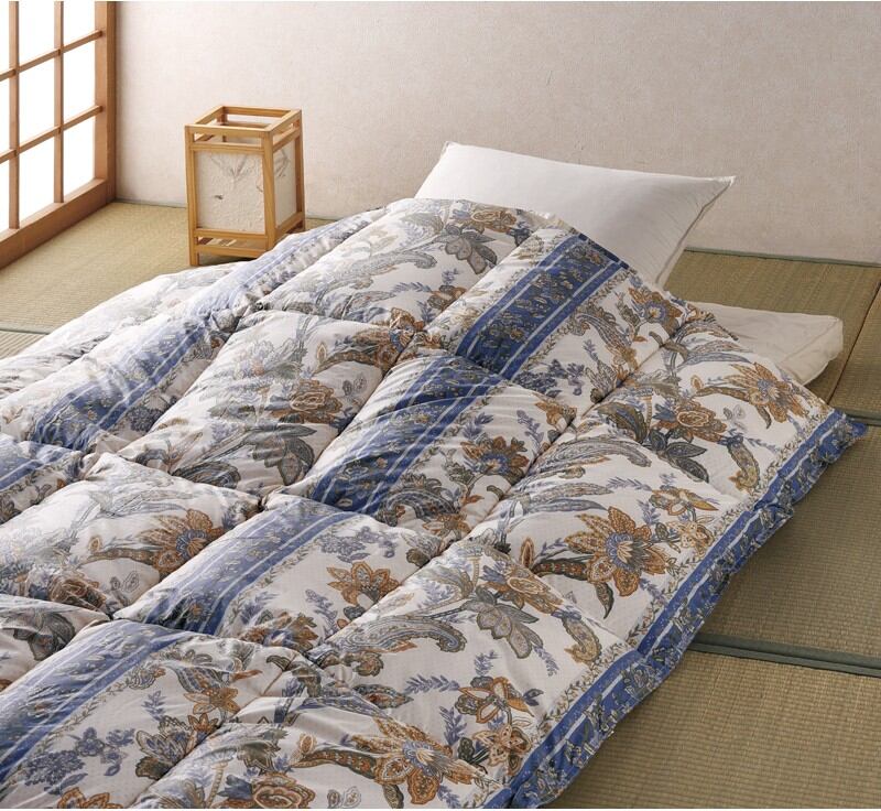 商品材料:(側地)ポリエステル80%・綿20%、(詰物)ダウン85%・フェザー15%(300g)
