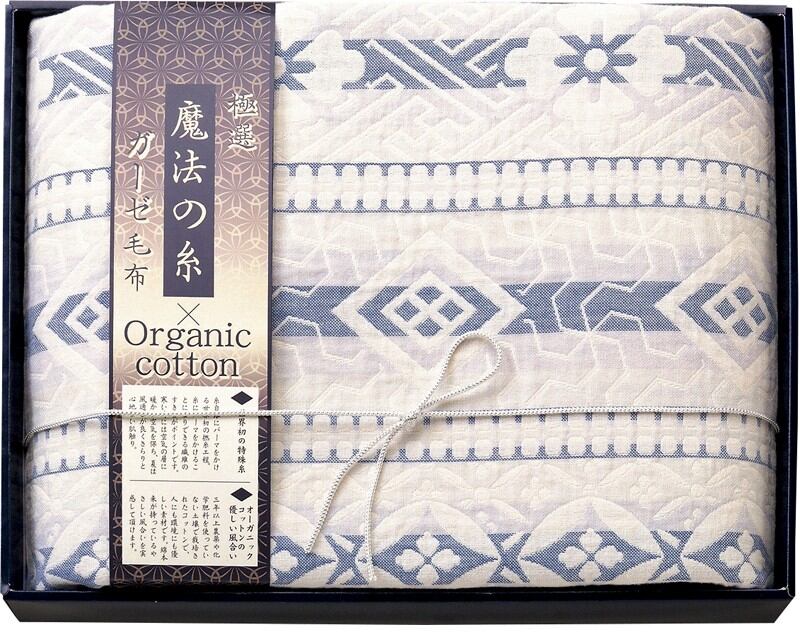 極選魔法の糸×オーガニック プレミアム三重織ガーゼ毛布 ブルー GMOW-8110 【送料無料】(沖縄・離島は別途)