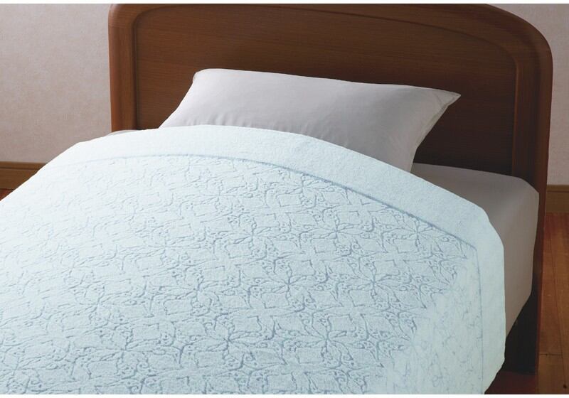 異なる太さの糸を織り合わせたジャガード織タオルケットです。程よい凸凹がさらりとした、やわらかな肌ざわりです。