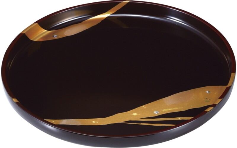 純金箔工芸 溜塗 金彩 10.0丸盆 【送料無料】(沖縄・離島は別途)