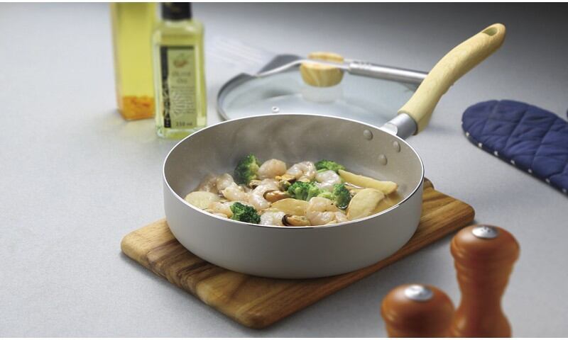 平らな面積が広いから、一度に多くの食材が重ならずに焼けます。普段使いはもちろん、お弁当や作り置きにもおすすめ。どんなキッチンにもなじみやすい、ナチュラルカラー。