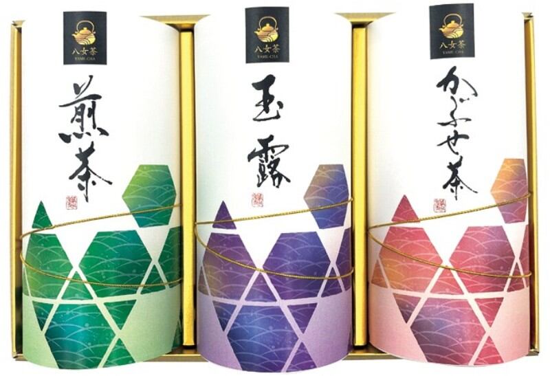 商品内容:八女煎茶90g・八女玉露50g・八女かぶせ茶90g×各1