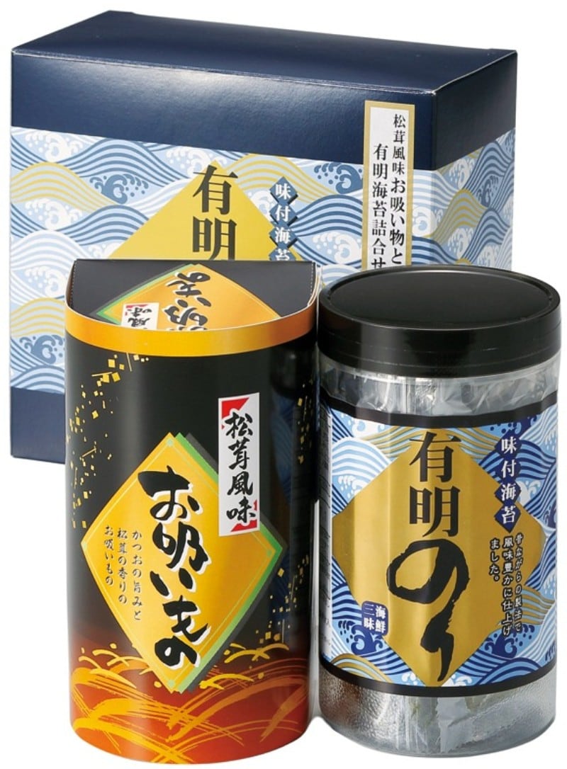 松茸の香りが楽しめる永谷園のお吸い物と有明海の恵みを受けて育った風味豊かな海苔の詰合せです。