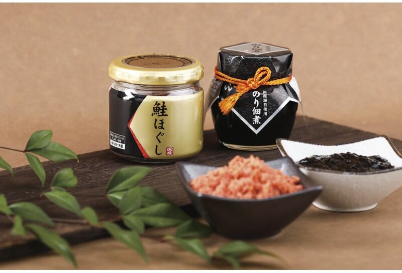 商品内容:鮭ほぐし50g・のり佃煮80g・紅ずわいがにほぐし身55g×各2、かつおだし(4g×8)×4