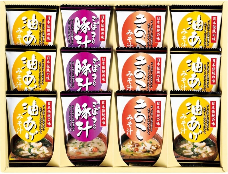 商品内容:お味噌汁(油あげ)×6、お味噌汁(きのこ・豚汁)×各3