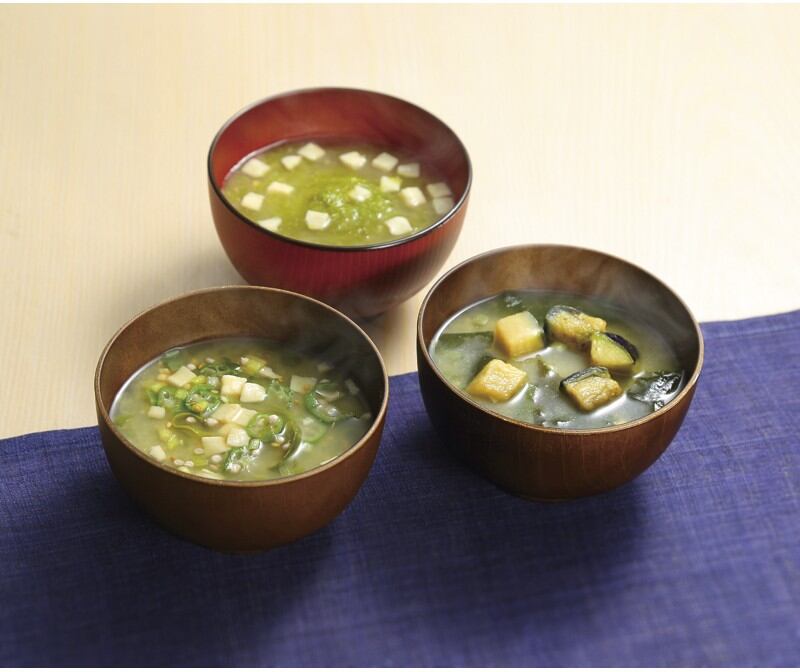 丸の内タニタ食堂の減塩みそを使用したフリーズドライのみそ汁です。みその甘みを活かしたやさしい味わいに、だしを加えておいしく仕上げました。
