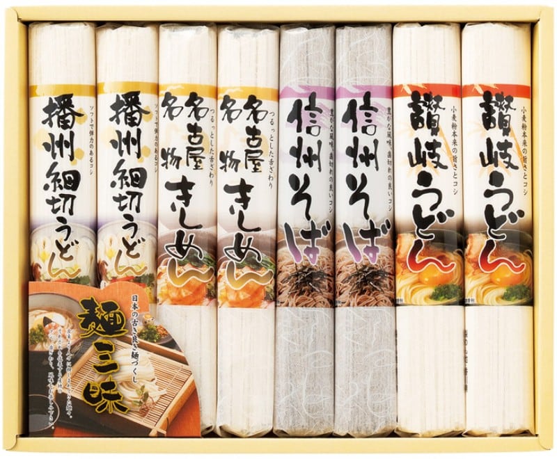 商品内容:讃岐うどん180g・信州そば120g・名古屋名物きしめん150g・播州細切うどん150g×各2