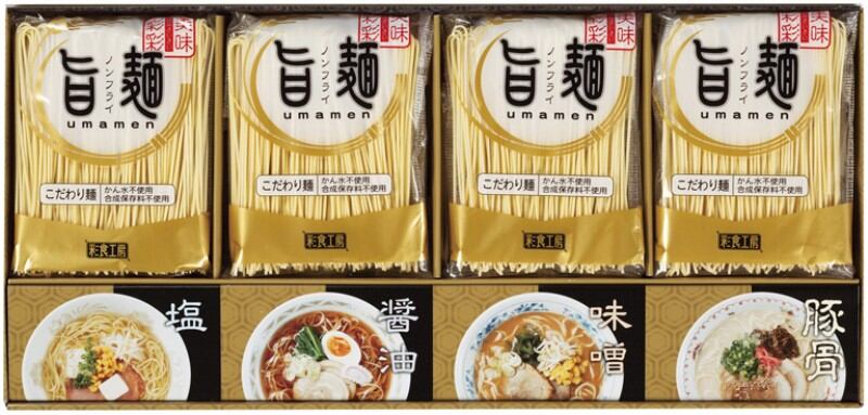 生麺をそのまま低温で48時間熟成乾燥させたこだわり麺「旨麺」。まるで生麺のようなのど越しと食感が特徴のこだわり麺に各種スープをセットしました。