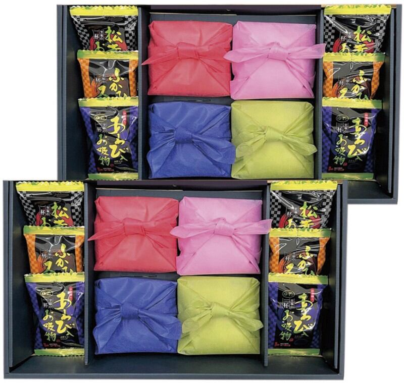 商品内容:新潟県産コシヒカリ150g×6、松茸のお吸物4.2g・ふかひれスープ5.5g・あわび入お吸物4g×各4、笹川流れの塩80g×2