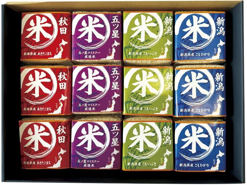 商品内容:新潟県産コシヒカリ150g・新潟県産こしいぶき150g・秋田県産あきたこまち150g・ブレンド米150g×各3