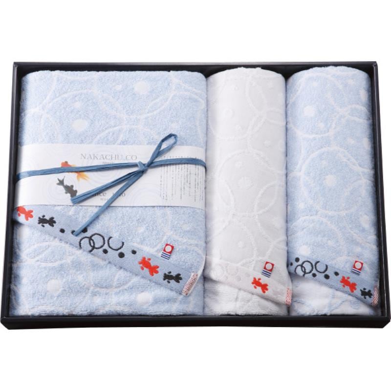 ギフト好適品 今治産金魚タオル バス・フェイスタオルセット GZKG-24450