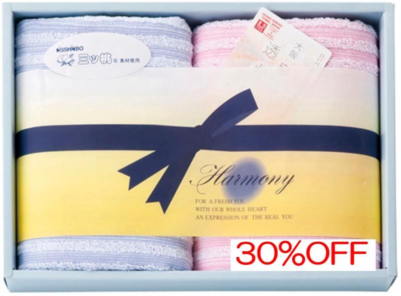 内祝 お返し引出物に NISSHINBO三ツ桃 リズムハーモニー 泉州フェイスタオル2枚セット RZ-1115