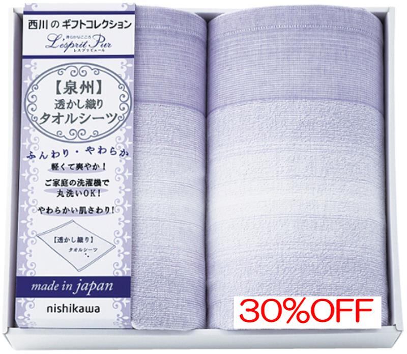 内祝 お返し引出物に ニシカワ レスプリピュール タオルシーツ2枚セット CM83210071