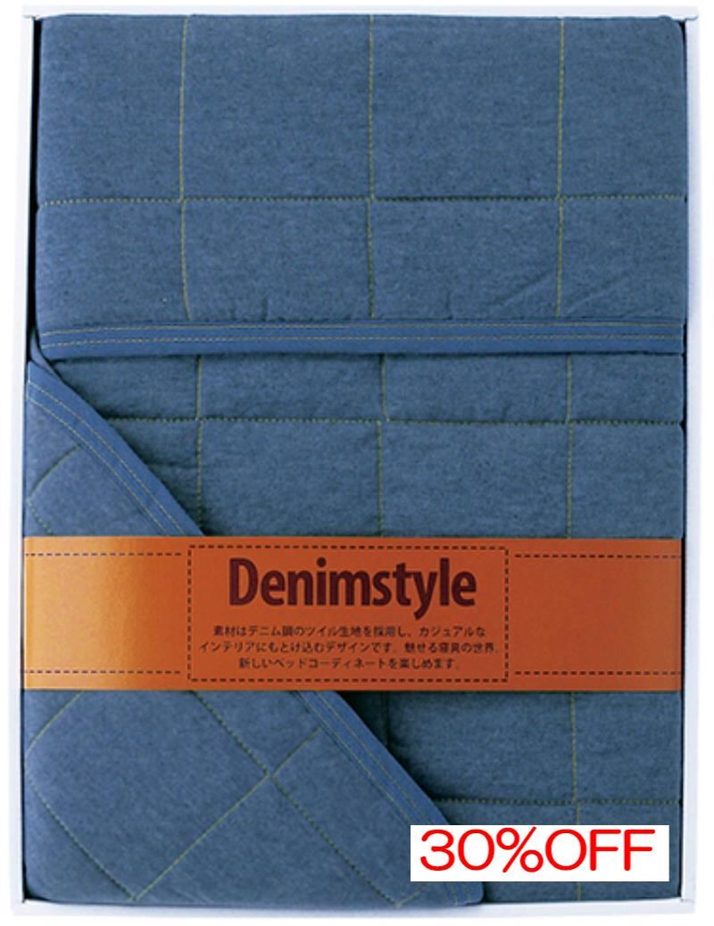 内祝 お返し引出物に デニム調キルト敷パッド&ピロパッド DN-1961