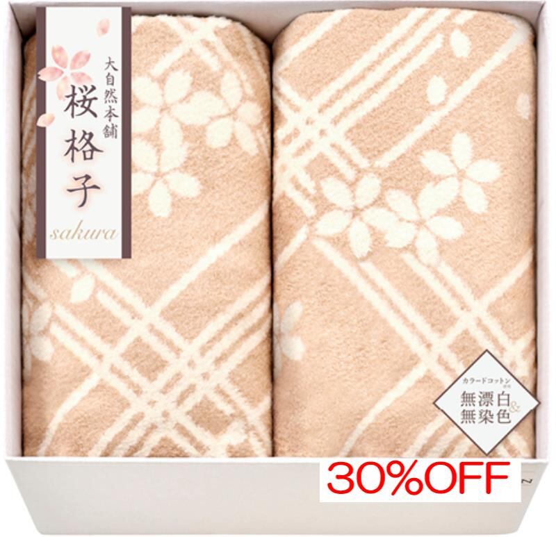内祝 お返し引出物に 大自然本舗 〜桜格子〜 肌にやさしい自然色のシルク入り綿毛布(毛羽部分)2枚セット SBN85300